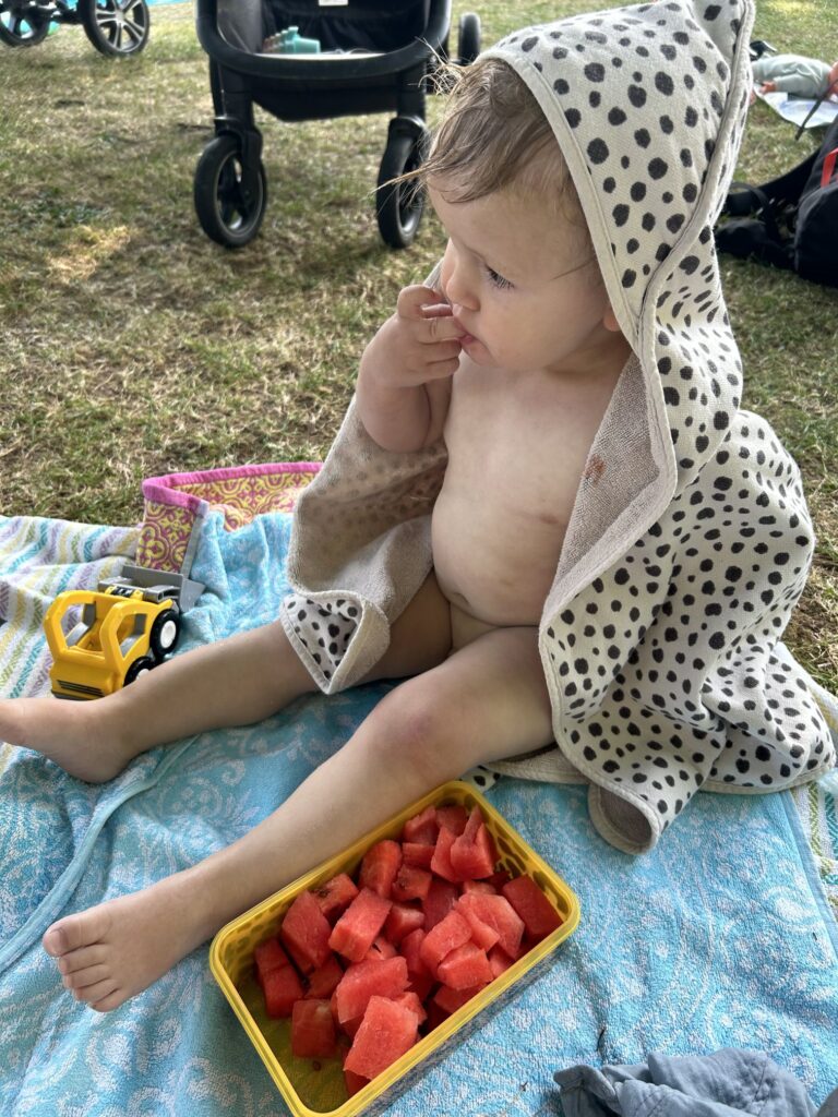 Der Kindergarten Vormittag war wieder voll gut. Mika hat auch wieder da gegessen. Der Mittagsschlaf war auch nicht besonders lang. Vielleicht hat Mika schon gewusst, dass es am Nachmittag mit Mama ins Freibad geht?! Da war Mika dann eine ganz dolle Wasserratte ohne Angst und immer voll dabei. Zwischendurch aber auch mal ins Handtuch einkuscheln und was essen.